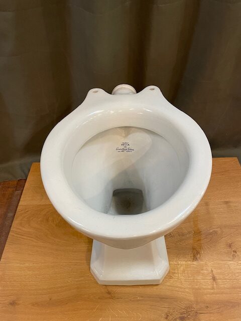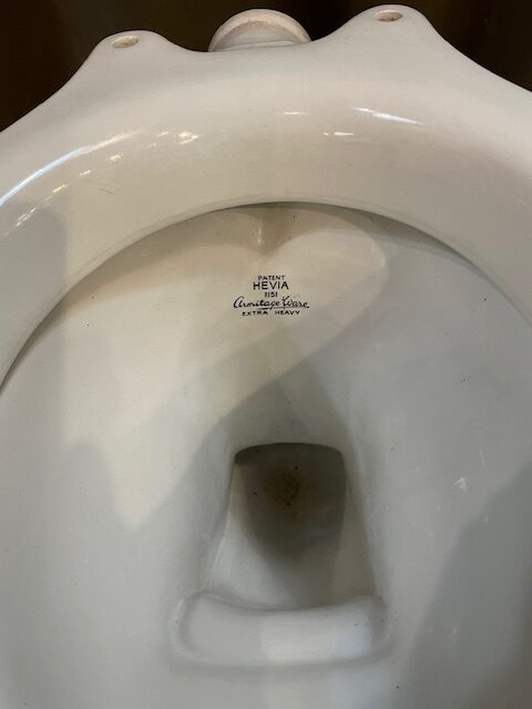 An early 20th century toilet pan, which features a ‘Patent Hevia’ stamp on the back of the bowl.