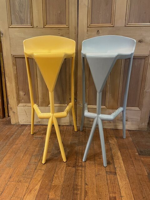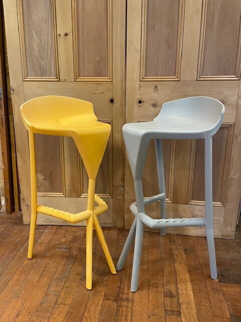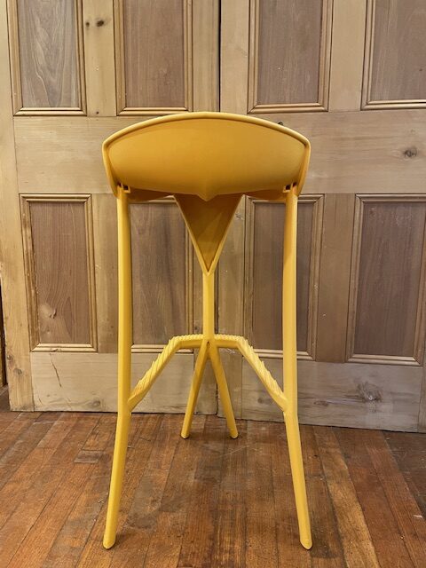 This italian design bar stool is by the company, Gaber. Made from techno polymer, the stool is stackable, for outside environments.