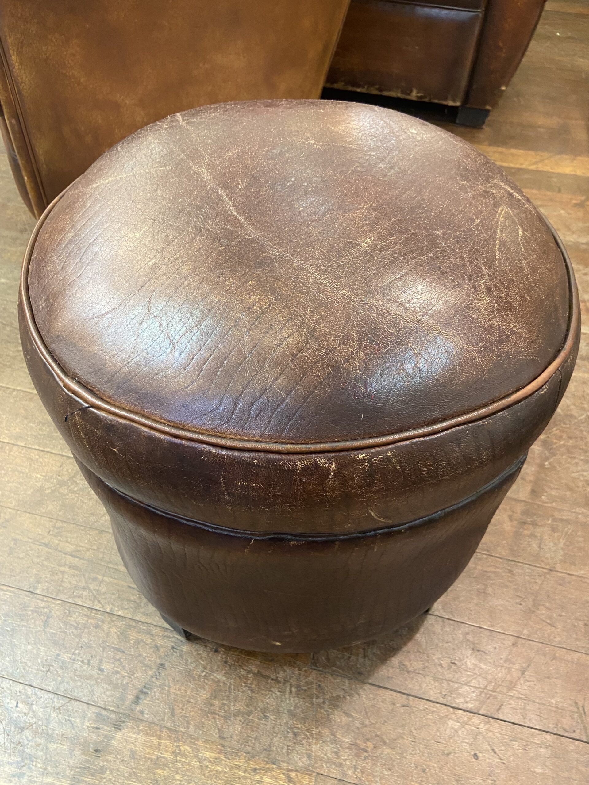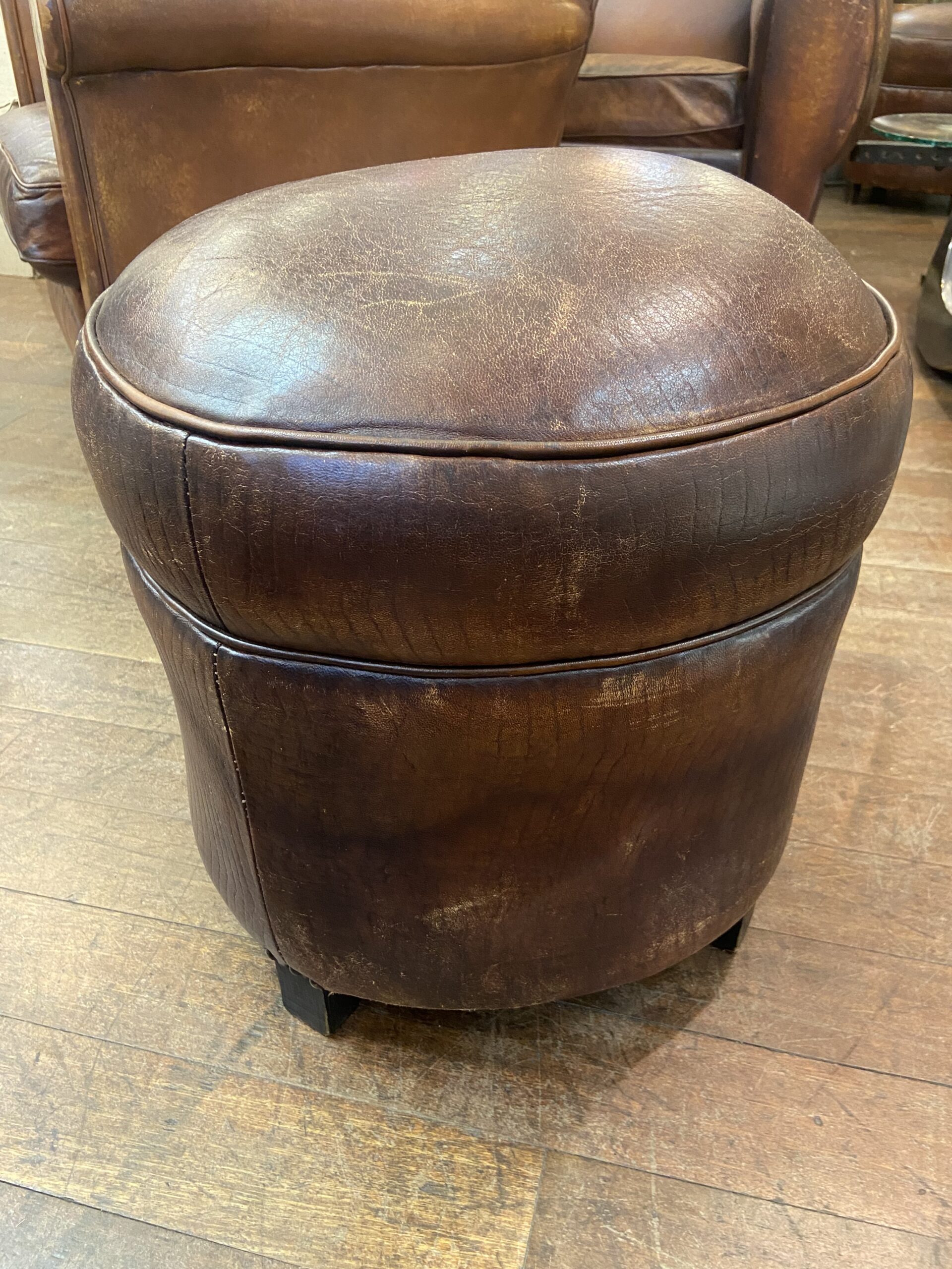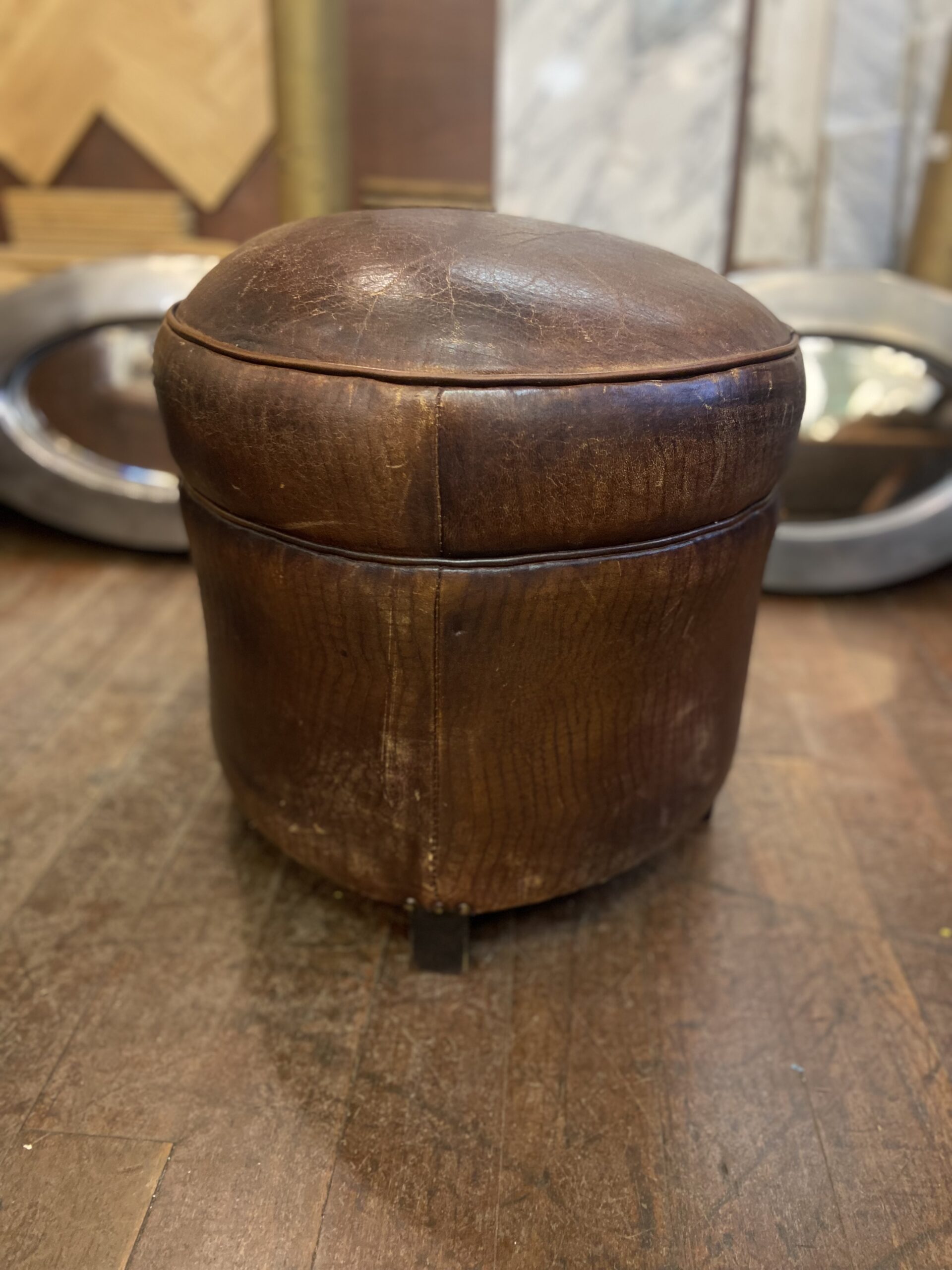 Vintage Round Leather Footstool