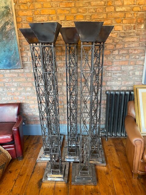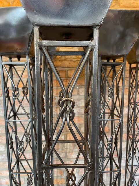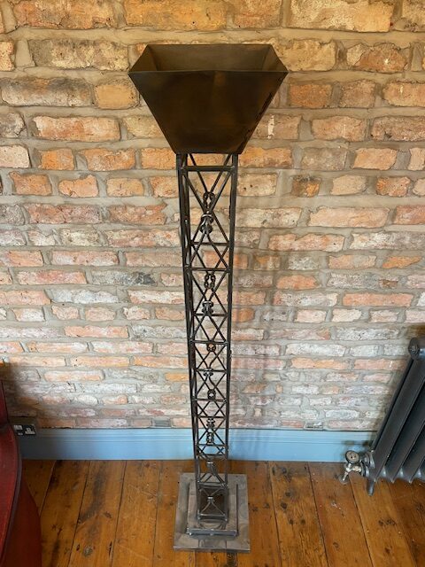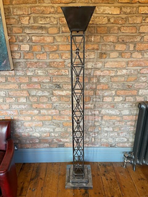 This fantastic neo classical uplight is made of polished steel and features characteristic knot details throughtout the column, and a layered platform base.