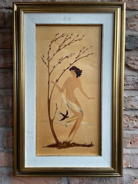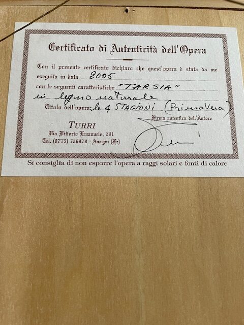 Created in 2005, this Contemporary piece of artwork has been created using intarsia – a technique which uses wood pieces, often in different colours or tectures, inlayed together like a mosaic, to create a design.