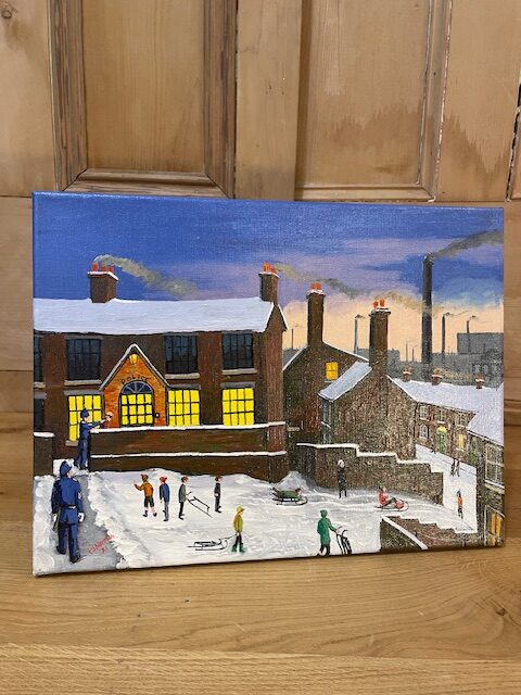 This is an original painting by Artist Peter J Norman (b.1960), titled ‘The Police Station’. Oil on canvas. Norman’s work often features northern industrial town scenes in a nostalgic style.